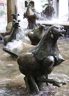 The Elwedritsch is a cryptid or mythical creature that supposedly inhabits thePalatinate of Germany. It is described as being a chicken-like creature with antlers. It also has scales instead of feathers. However, it is said that their wings are of little use. That is why they live mainly in underbrush and under vines. Sometimes Elwetritschen are depicted with antlers of a stag and their beaks often appear to be very long. In the second half of the 20th century, artists increasingly portrayed Elwetritschen as female by adding breasts. Elwetritschen supposedly originate from crossbreeding chickens, ducks, and geese with mythical wood creatures such as goblins and elves. Being a fowl, they naturally lay eggs, which as a result of descending from forest spirits, grow during breeding season. Eggs in various sizes are artistically depicted at the “Elwetritschenbrunnen” in Neustadt an der Weinstraße.The area in which tales of the Elwetritsch are spread expands from the Palatinate Forest in the west of Germany towards the east across the Upper Rhine Plain to the southern parts of the Odenwald. The mythical creature also appears in the north ofBaden-Württemberg. In the Main-Tauber-Kreis, where they are known as “Ilwedridsche”, the children are told that at night the creatures sleep in the crowns of the willow trees standing next to the river Tauber. In Neustadt an der Weinstraße, which is said to be the “capital” of the Elwetritsches, there is an Elwetritsche-fountain, created by Gernot Rumpf. Other sources consider Dahn in the southwestern Palatinate, which also has an Elwetritsche-fountain, Erfweiler or other villages as secret capitals of these creatures. ThePennsylvania Dutch are convinced that Palatinate people—their biggest group of ancestors—all of whom emigrated to America, had taken some “Elbedritschlicher” with them “so ass sie kenn Heemweh grigge deede” (so that they wouldn’t become homesick). Tales of the Elwetritschen are also documented in Amish communities.Like the jackalope, the Elwetritsch is thought to have been inspired by sightings of wildrabbits infected with the Shope papilloma virus, which causes the growth of antler-liketumors in various places, including on the head.The process is very similar to the "snipe hunt." The Elwetritsch is supposedly very shy, but also very curious. A hunting party consists of a "Fänger" (catcher), equipped with a big potato sack and a lantern, and the "Treiber" (beaters). The catcher is led into the woods where the Elwetritsch is supposed to live, instructed to wait in a clearing with his sack and lantern, while the beaters will supposedly roust the Elwetritsch. The light of the lantern is said to be attractive to the curious creature, so it will come to investigate and will then be caught by the catcher. While he waits, everyone heads back to the Gasthaus or wherever the party had previously assembled, to wait for the patsy to realize he has been fooled.There are clubs in several Palatinate cities which promote the myth of the Elwetritschen. The Elwetrittche-Club in Landau, formed in 1982, is the oldest club. A square dancing club from the same city calls its annual 'Dance-Special' the „Landauer Elwetrittsche-Jagd“ (Landauian Elwetrittche-Hunt). There is also an Elwetritsche Academy in Pirmasens, a college for „Tritschology“ in Dahn and an exhibition with figures of the mythical creatures in the Landauian zoo as well as in the zoo in Kaiserslautern.Many memorials can be found in the Palatinate:[]